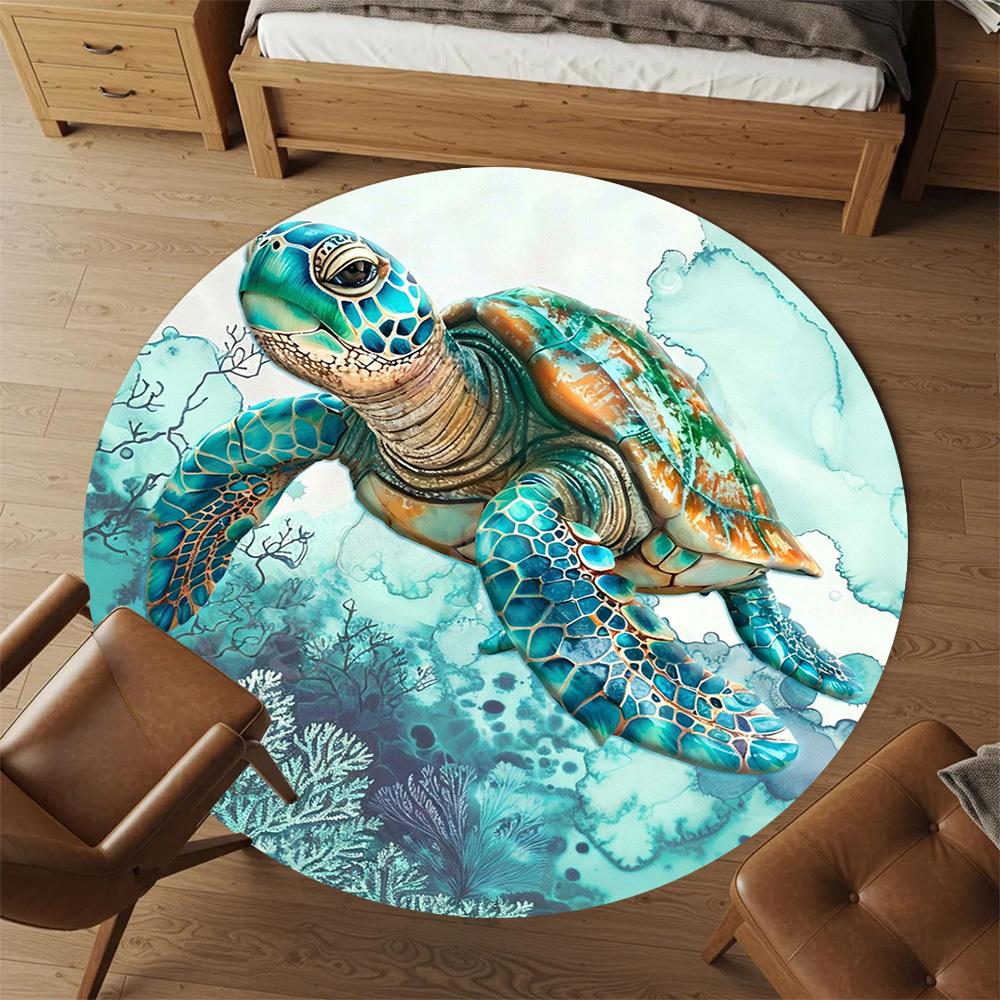 1PC turtle sea Office Round Area Rug, Under Office Chairs Bedroom Living Room Home Decor, Carpet for Office -1110028