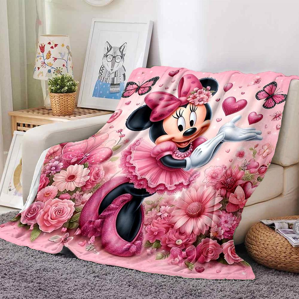 1pc Pink, butterflies, and cute Minnie Mouse blanket Lightweight Flannel Throw for Sofa Bed Travel Camping Livingroom Office Couch Chair