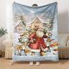 1pc Santa Claus, snowy village blanket Lightweight Flannel Throw for Sofa Bed Travel Camping Livingroom Office Couch Chair