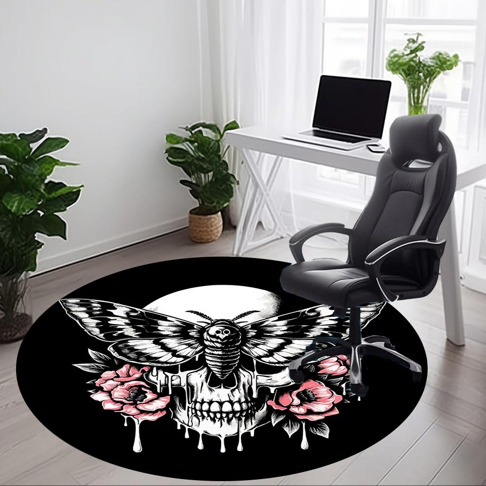1pc Gothic Skull Butterfly Chair Carpet for Office, Round Non Slip Durable Large Size Office Carpet, Suitable for Office