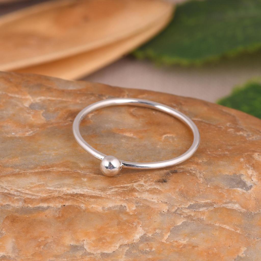 Современное минималистичное серебряное кольцо-шарик, Тонкое кольцо из стерлингового серебра, Элегантное штабелируемое кольцо для женщин.