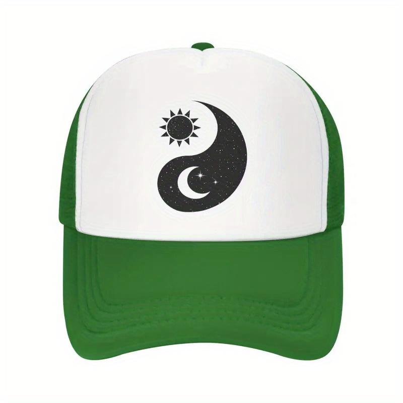Yin Yang Sun Moon Graphic Trucker Hat Green White Adjustable Unisex Baseball Cap Casual Outdoor — купить товар онлайн с бесплатной доставкой по всему миру!