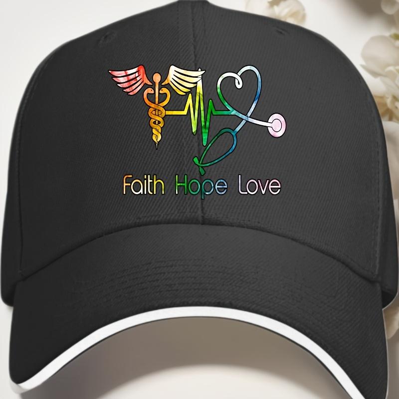 Кепка с вышивкой 'Вера Надежда Любовь', ЭКГ, Стетоскоп, Кадуцей, Полиэстер, Регулируемая, Повседневная, для Медицинских Работников
