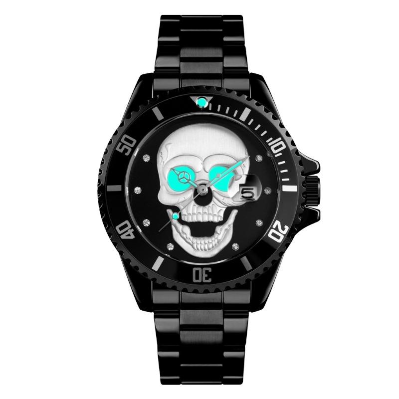 Популярные часы, модный череп, инкрустированный стразами, светящиеся мужские водонепроницаемые кварцевые часы