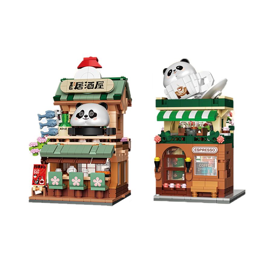 Japanese Street View Building Blocks Mini Bricks Panda Izakaya Coffee Shop Mini House Building Toys Gifts for Kids