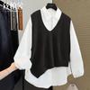 Женский комплект из двух предметов: рубашка с лацканами и длинным рукавом и асимметричный жилет