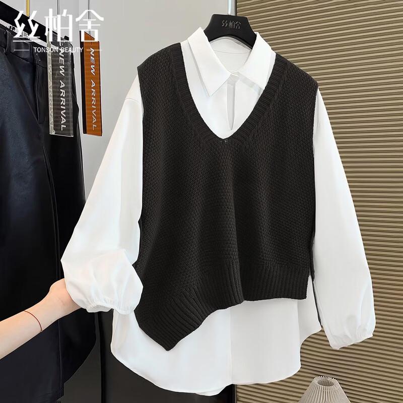 Женский комплект из двух предметов: рубашка с лацканами и длинным рукавом и асимметричный жилет — купить товар онлайн с бесплатной доставкой по всему миру!