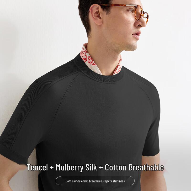 Zhuangji Men's Light Luxury Mulberry Silk Blend Round Neck T-Shirt