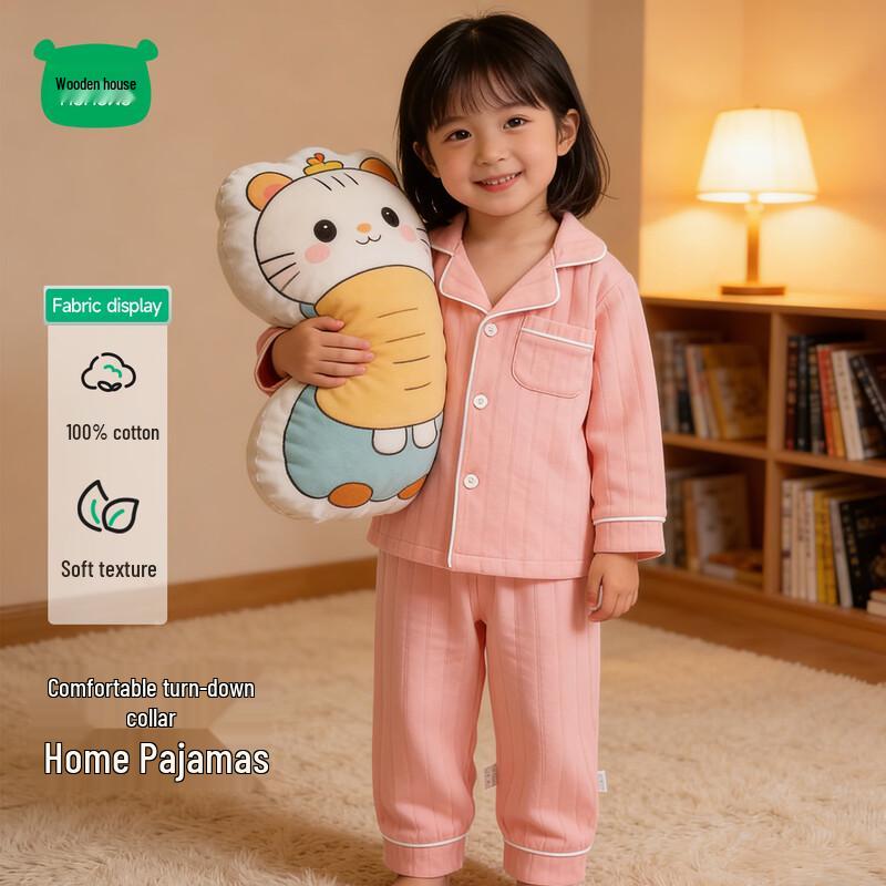 Children's Combed Cotton Collared Pajama Set — купить товар онлайн с бесплатной доставкой по всему миру!