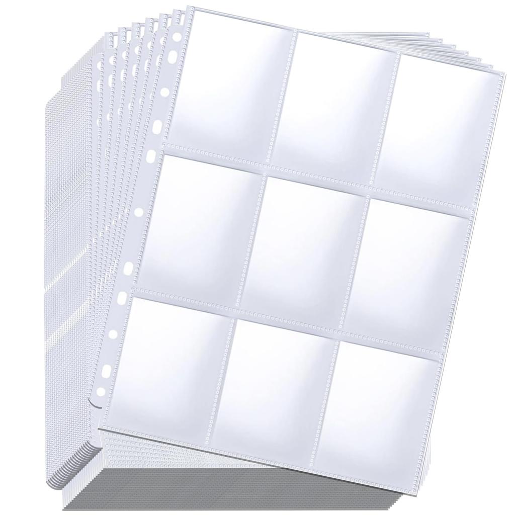 [Большая вместимость - Двустороннее хранение] Двусторонняя конструкция для хранения имеет 9 карманов, что позволяет хранить до 18 коллекций на одном листе. Высокопрозрачный материал гарантирует, что изображения будут хорошо видны даже через файл.