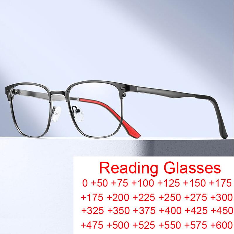 Высококачественные металлические очки для чтения с защитой от синего света для мужчин, квадратные, с полуободком, по рецепту, модные, для пресбиопии — купить товар онлайн с бесплатной доставкой по всему миру!