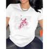 Biker Pink Graphic Tee Casual Short Sleeve Black Top for Outdoor & Night Out — купить товар онлайн с бесплатной доставкой по всему миру!