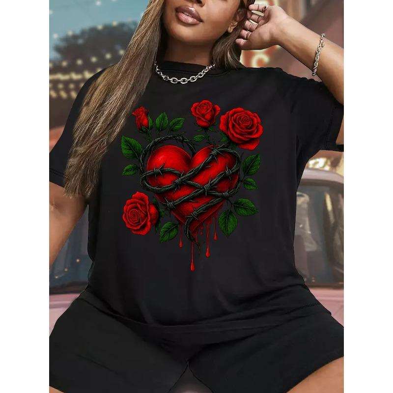 ![Европейские размеры [Цветная футболка большого размера] Повседневная женская футболка большого размера - Яркий цветочный принт с красными розами на черном](https://img-edg.joomcdn.net/4a09091fb581383af5ce8bd2e63f79890705232a_100_100.jpeg)