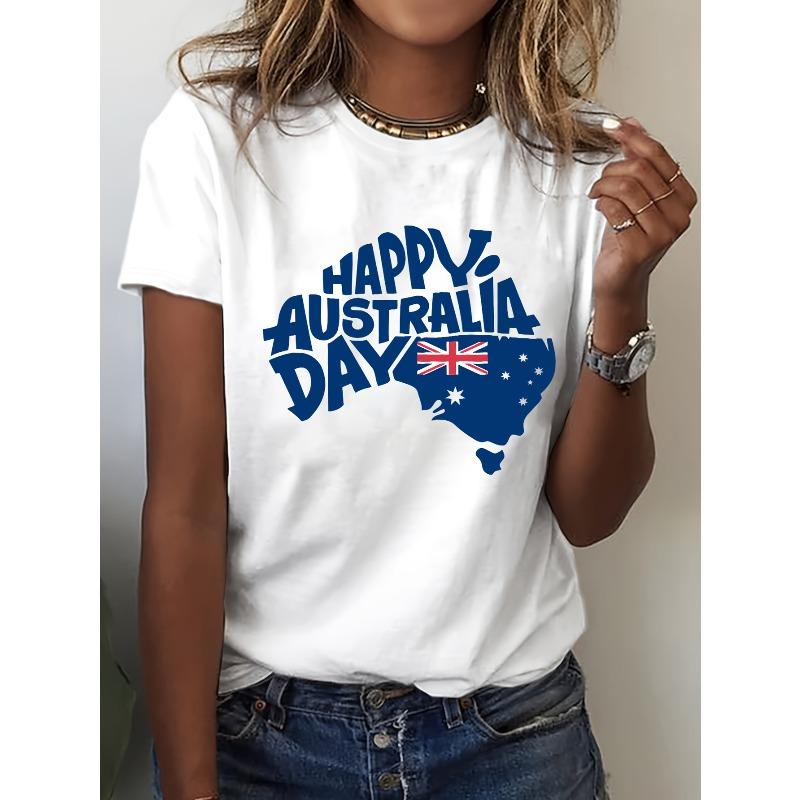 Women's Happy Australia Day Graphic Tee Crew Neck Short Sleeve Union Jack Map Design Regular Fit Spring Summer Fall Casual Everyday Top — купить товар онлайн с бесплатной доставкой по всему миру!