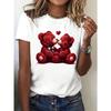 Европейский Размер Романтичная Мечтательная Милая Женская Футболка с Коротким Рукавом - Нежный Принт с Розой и Медведями для Пары, Легко Сочетающаяся Повседневная Футболка с Круглым Вырезом