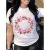 Женская футболка с цветочным принтом роз, круглый вырез, всесезонная, повседневная, дышащая, удобная, для ежедневного ношения