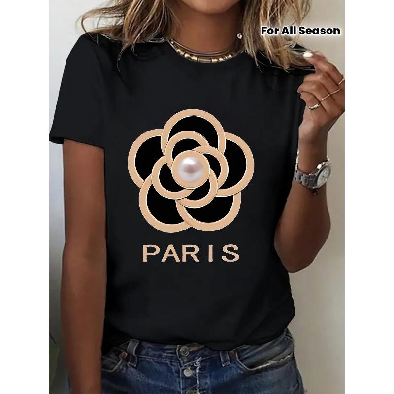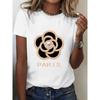 Женская футболка с принтом цветка камелии, круглый вырез, короткий рукав, средняя эластичность, можно стирать в машине, повседневная, для улицы, всесезонный топ