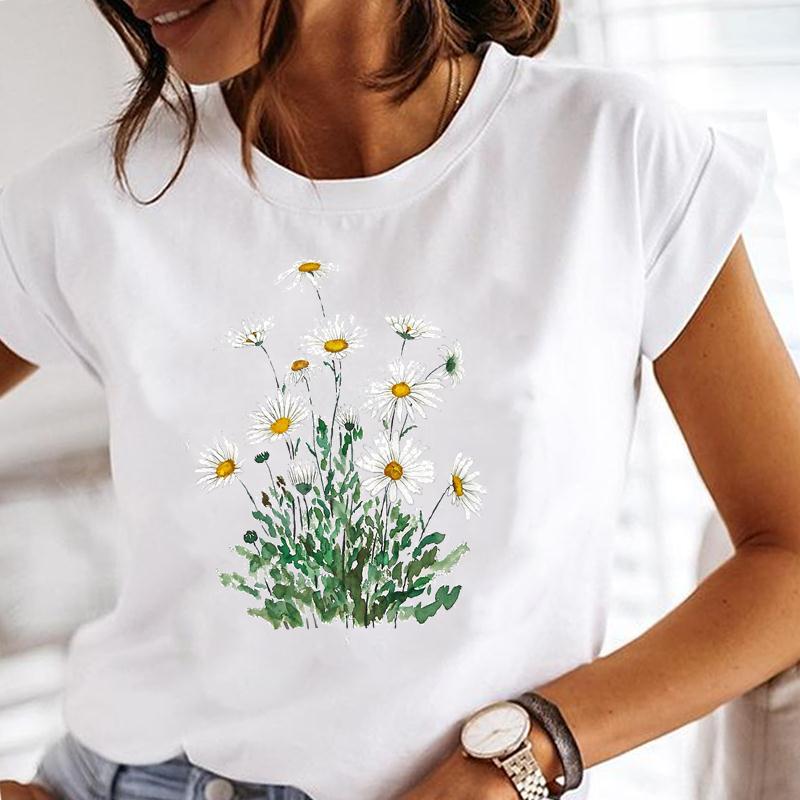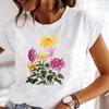 (Европейский размер) Летняя Мода Женский Растение Прекрасный Цветок Тренд Милый Короткий Рукав Принт Футболка Топ Футболка Леди Женская Одежда Повседневная Графическая Футболка