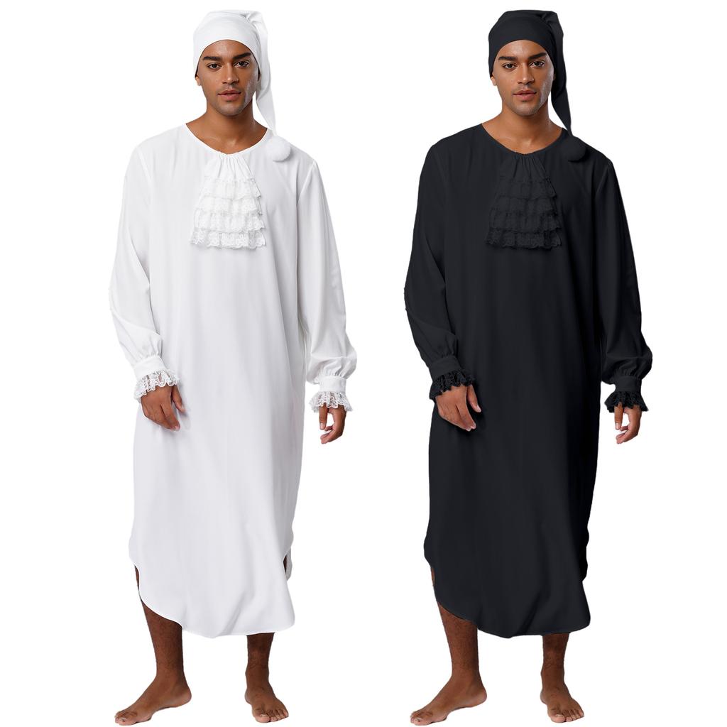 Мужская викторианская ночная рубашка с длинным рукавом, кружевная отделка, оборки на воротнике, изогнутый подол, ночной халат, костюм на Хэллоуин, Рождество