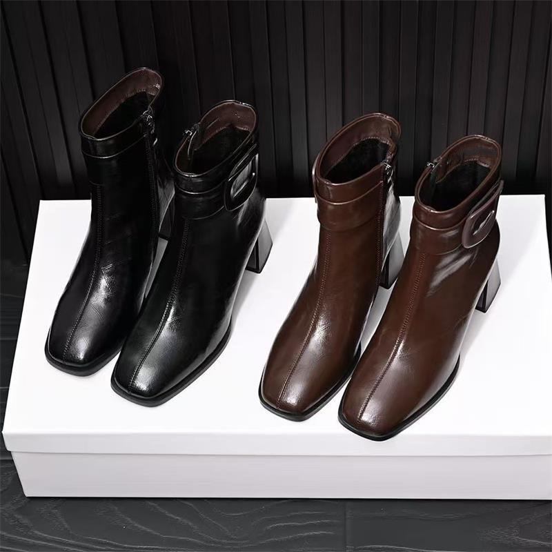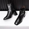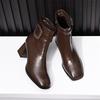 New autumn and winter French retro square head thick heel short boots temperament side zipper fashion boots