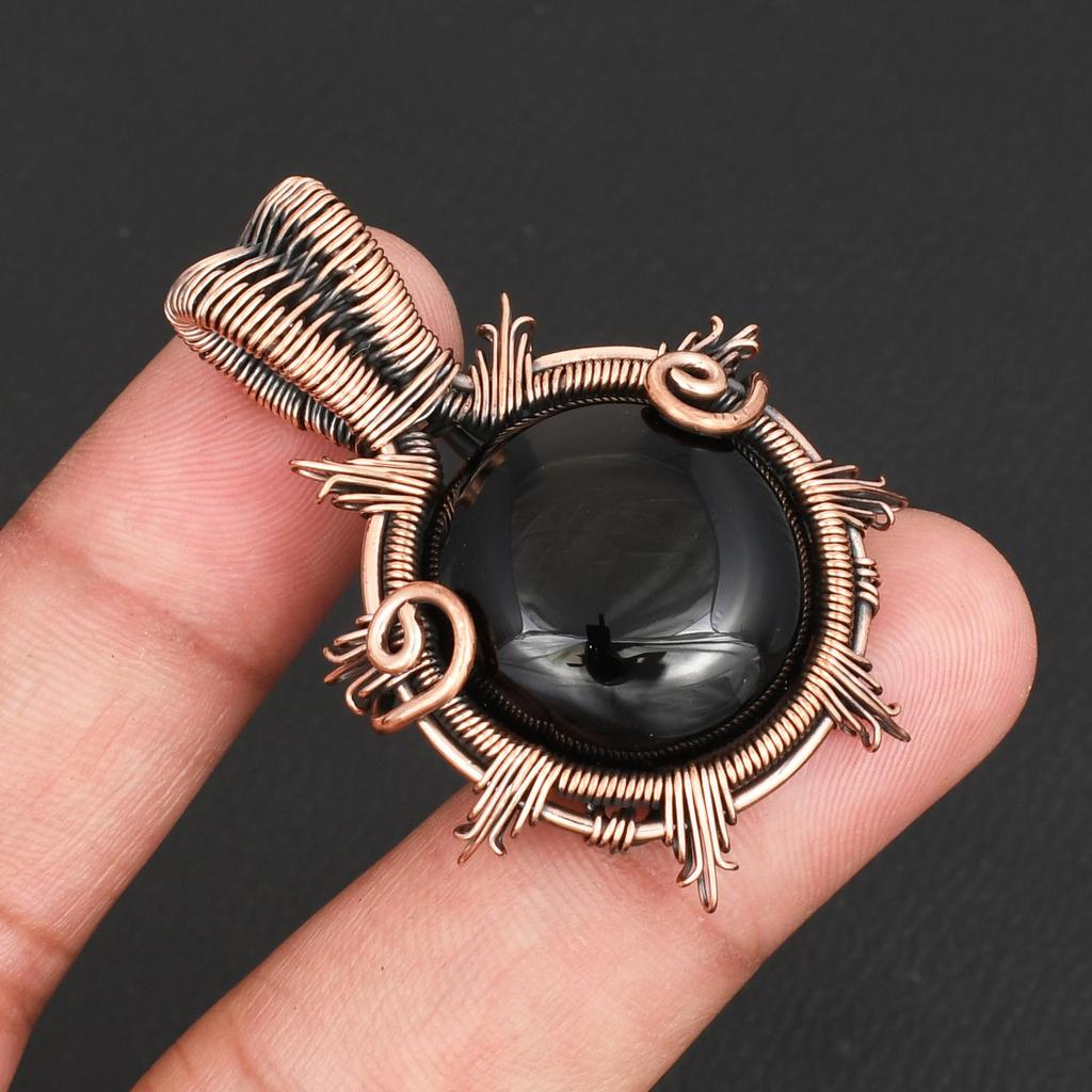 Подвеска с обмоткой из медной проволоки Подвеска с камнем Черный Оникс Винтажный стиль Бохо Украшение для Мужчин и Женщин Ручная работа Подвеска