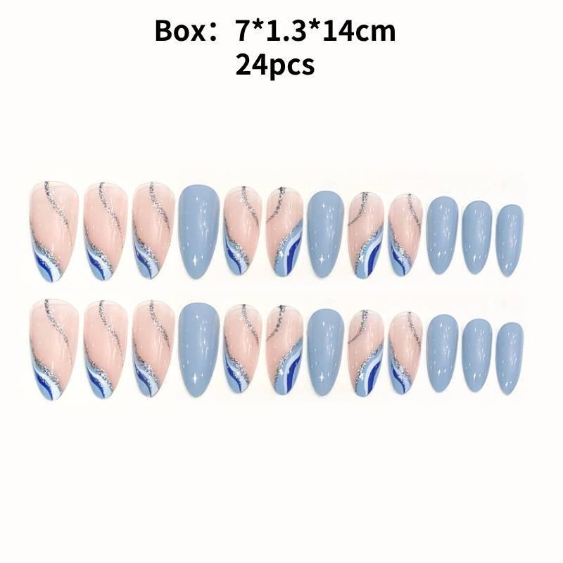 Миндалевидный Простой Волна Синий Белый Французский Весна И Лето Новый Продукт Свежий И Чистый Носимый Нейл-арт W12