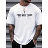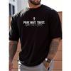 Европейские размеры Мужская черная футболка с коротким рукавом с принтом "Молись, Жди, Доверяй, У Бога Есть План" - Свободный крой, Повседневная футболка, Минималистичный дизайн для лета, Ежедневная