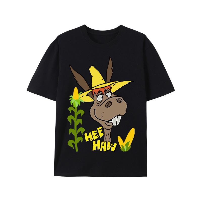 European sizes T-shirt with a Donkey Wearing a Yellow Hat and Corn Plants, Text Reads 'Hey Ho', All-season Casual Wear, Comfortable Clothing Y1-3 — купить товар онлайн с бесплатной доставкой по всему миру!