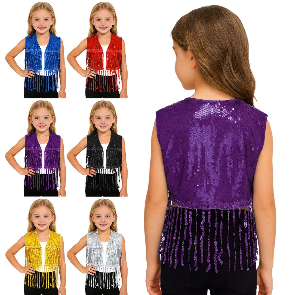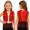 Versatile Girls Dance Waistcoat: Shiny Tassel Sequin Crop Top, Sleeveless Vest for Jazz, Cha-Cha, Halloween & Theme Parties