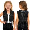 Sparkly Sequin Fringe Vest for Girls: Sleeveless Open Front Crop Top Waistcoat with Tassels, Perfect for Dance Recital & Show