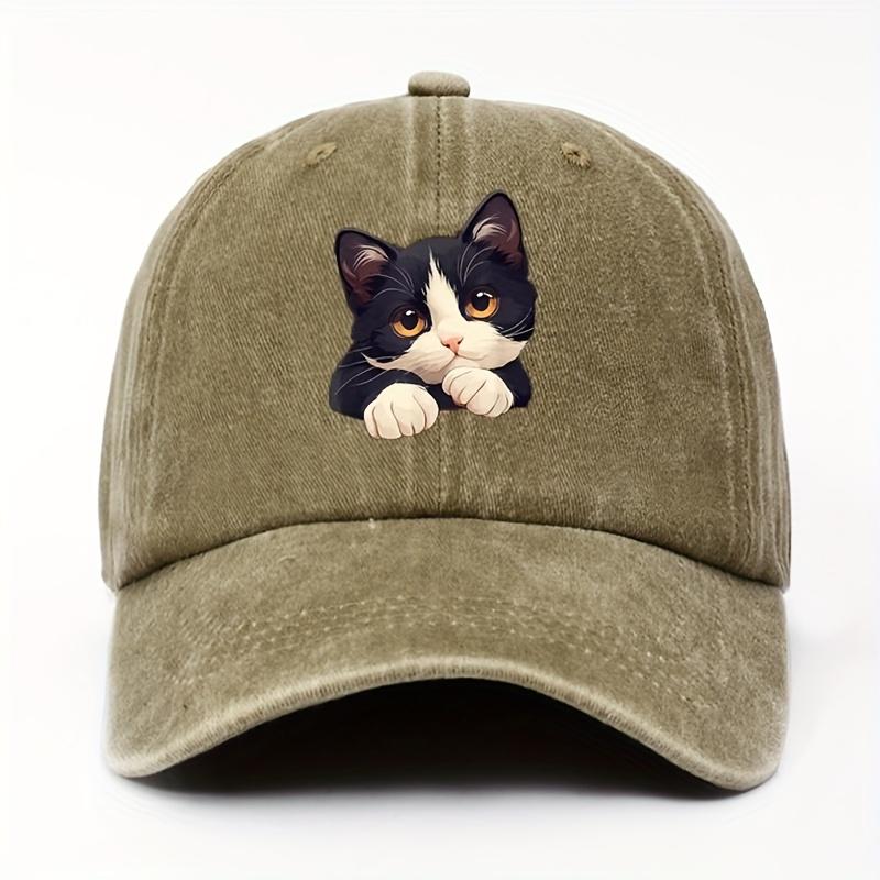 Tuxedo Kitten Peeking Baseball Cap Polyester Casual Unisex Adjustable Outdoor Hat for Cat Lovers — купить товар онлайн с бесплатной доставкой по всему миру!