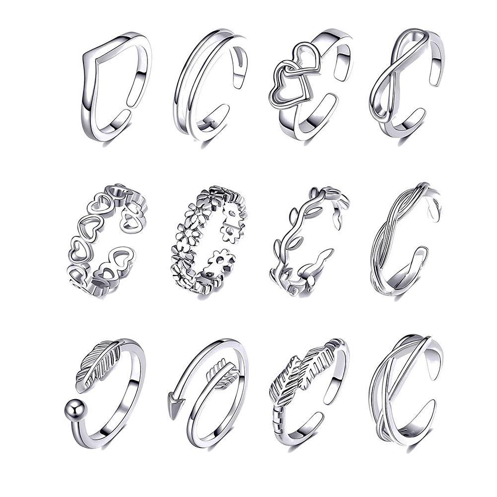 12Pcs Open Toe Rings Adjustable Toe Band Ring Set Finger Foot Jewelry for Women Cute Heart Feather Summer Beach Toe Foot Jewelry — купить товар онлайн с бесплатной доставкой по всему миру!