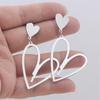 Большие двухслойные полые геометрические серьги-подвески в форме сердца для женщин и девочек, ювелирные изделия, аксессуары, подарок на День святого Валентина