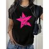 Женская белая полиэстеровая футболка европейского размера с принтом в виде розовой звезды - Повседневная, удобная и универсальная для дома — купить товар онлайн с бесплатной доставкой по всему миру!