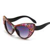 Винтажные Оверсайз Кошачий Глаз Солнцезащитные Очки Женские Роскошные Дизайнерские Панк Сексуальные Защита UV400 Алмазные Сахарные Оттенки