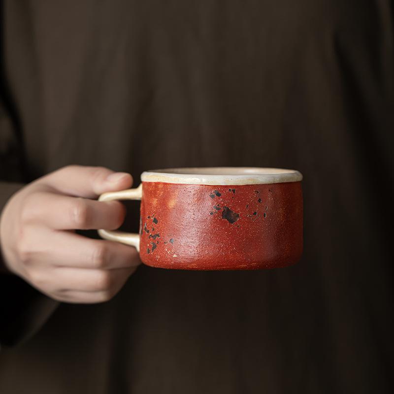 Керамическая чашка из каменной массы ручной работы в японском стиле, чашка для одинарного эспрессо, минималистичная чашка для турецкого кофе, глазурованная красная, рождественский подарок