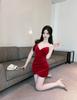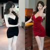 Sexy V-neck low-cut suspender skirt, short golden velvet bottoming skirt, slim and thin hip-wrapped dress for women