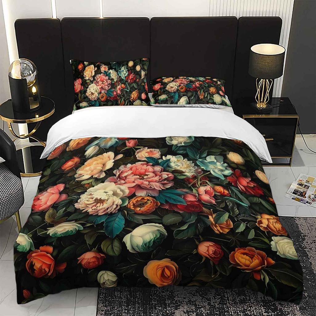 3 шт. Винтажный цветочный комплект постельного белья Пододеяльник Бохо цветочный комплект постельного белья Стеганое одеяло Темный цветочный тематический комплект стеганого одеяла для кровати Роскошный