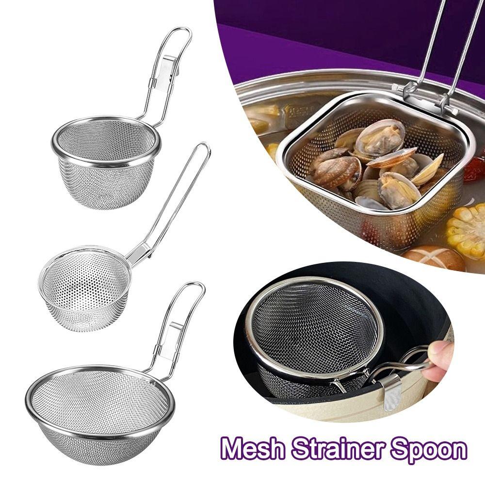 Cooking Utensils Mesh Strainer Spoon Korean Noodles Scoop Stainless Steel Hot Pot Strainer Mesh Long Handle Frying Filter Basket