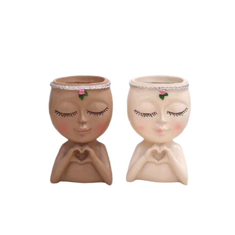 Creative Resin Face Flower Pot with Drainage Hole Loving Little Girl Succulent Planter Gift Cute Desktop Storage Garden Supplies