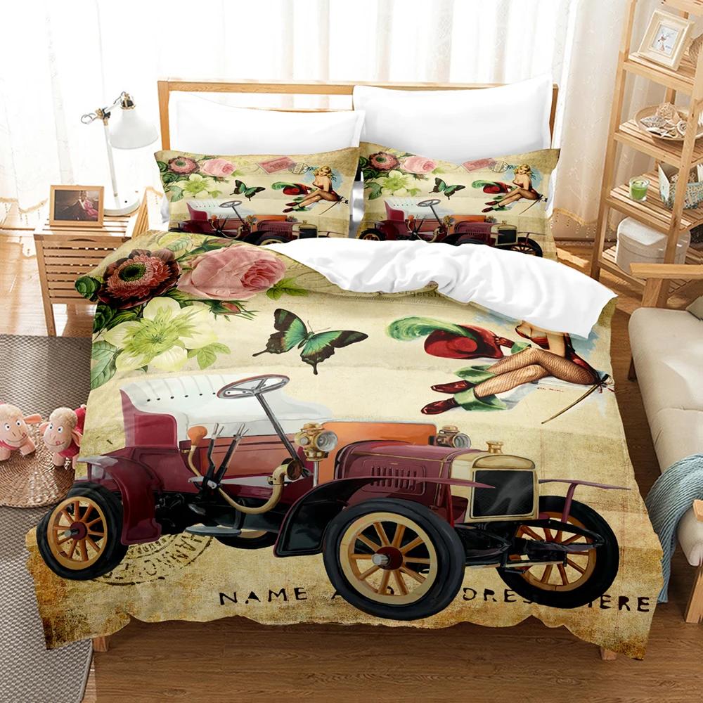 3d Vintage Car Including Duvet Cover Set With Pillowcases Microfiber 2/3pcs Cool Sports Car Bed Comforter Set For King Bedding