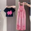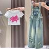 Очаровательные летние наряды для девочек, комплект джинсовых комбинезонов свободного кроя с красочной футболкой