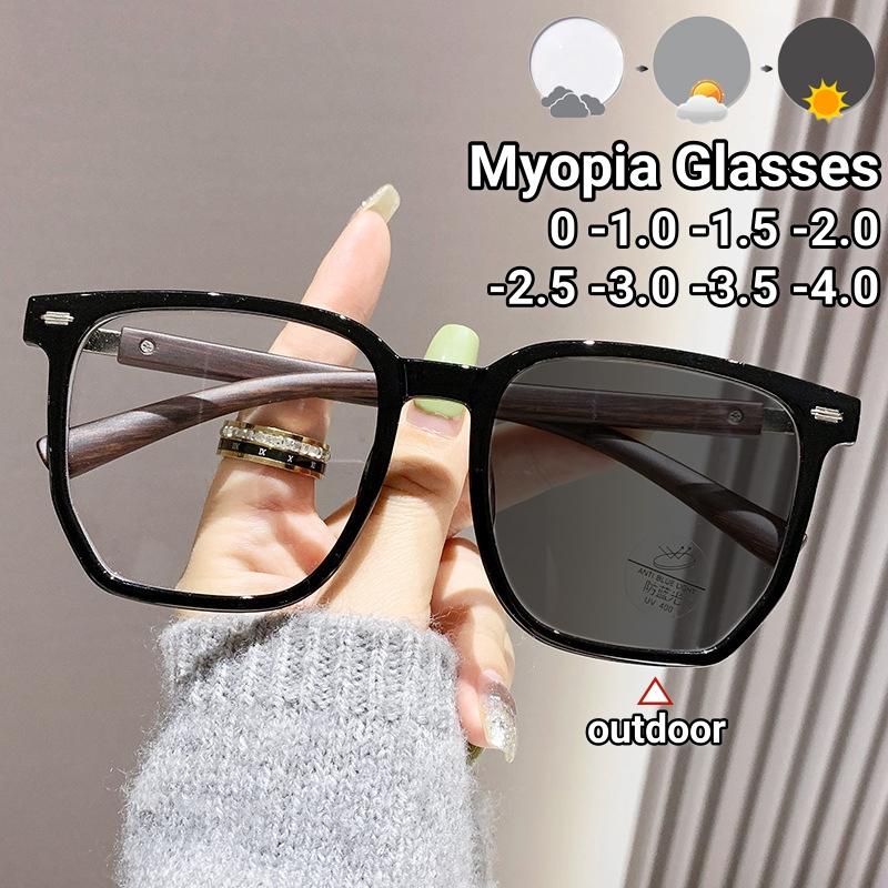 Photochromic Polygonal Myopia Glasses Retro TR90 Black Frame Anti Blue Light Near Sight Eyewear Large Oversized — купить товар онлайн с бесплатной доставкой по всему миру!