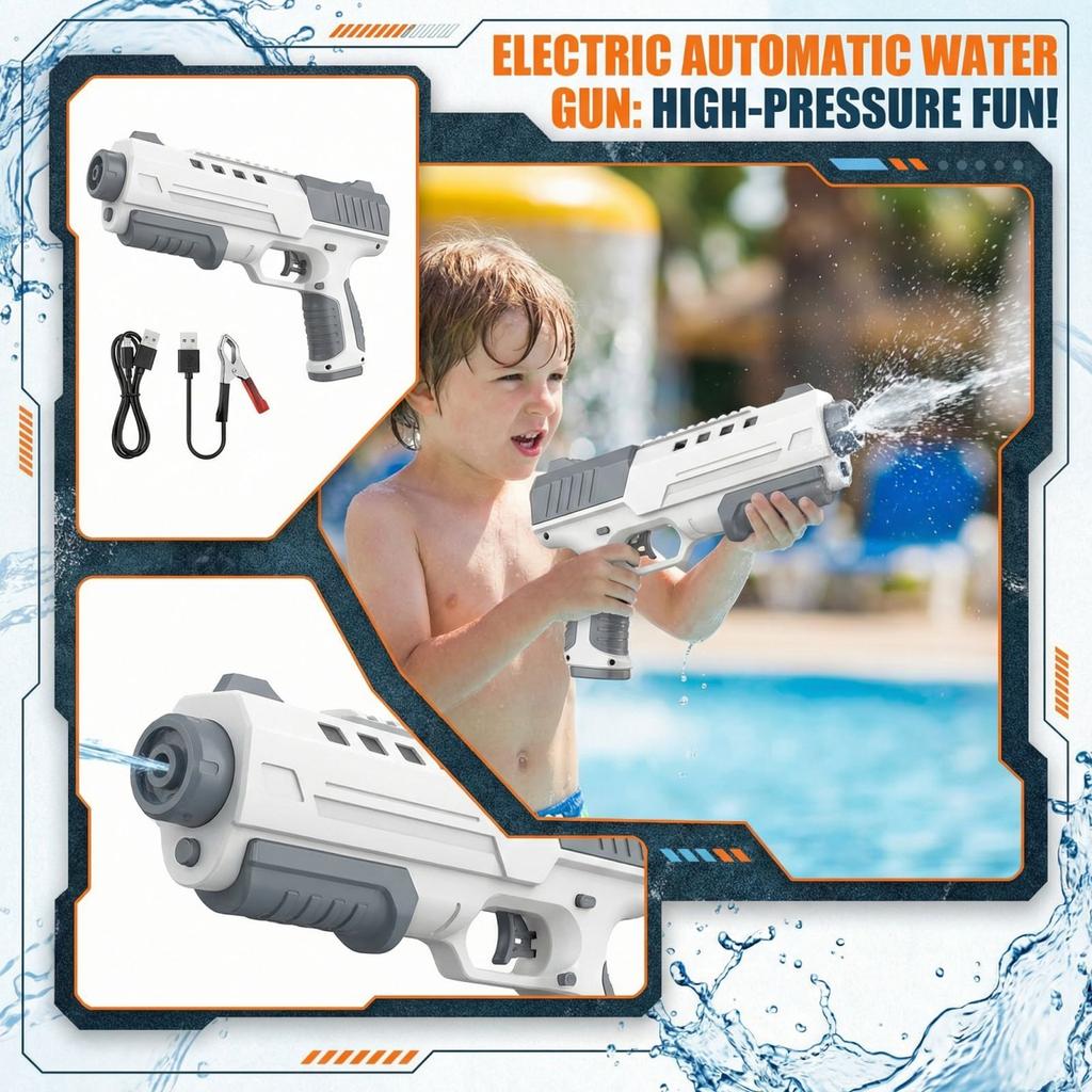 Electric Continuous Fire Water Toys, Automatic Water Suction, Powerful Water Spray, High Pressure Water Toy.