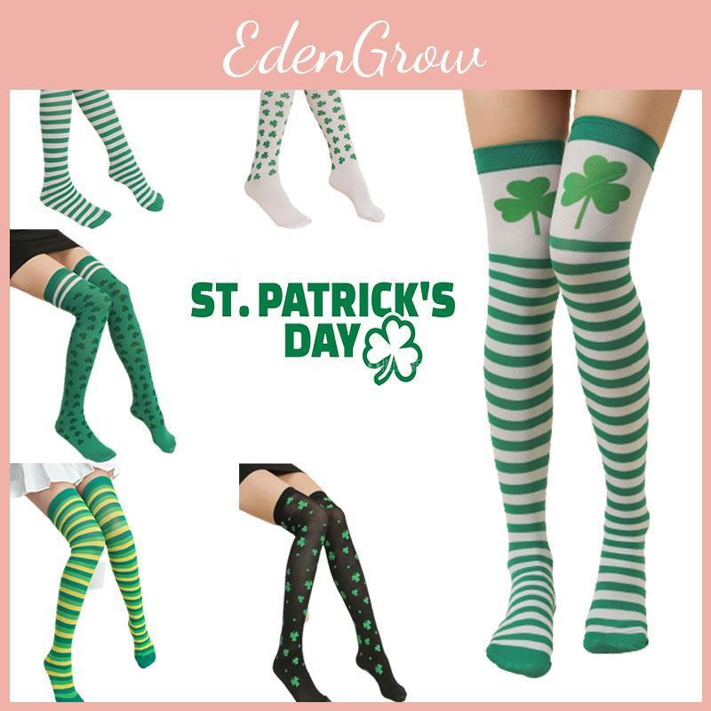 Женщины ул.. Носки до бедра в полоску с трилистником на День святого Патрика