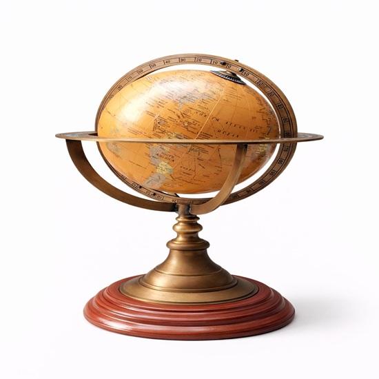 The armillary sphere is a historical scientific model representing the celestial sphere with rotating rings symbolizing the equator, zodiac, and planetary orbits. This decorative brass globe is inspired by ancient navigational instruments once used by sailors and astronomers.