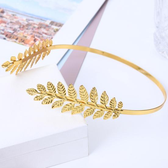 Изысканная отделка из золотых листьев и мерцающая отделка этого головного убора улучшат ваш внешний вид.. Идеально подходит для свадеб, танцев или фестивалей, его воздушное очарование подчеркивается изящным дизайном спинки.. Независимо от того, уложены ли волосы волнами или собраны в элегантную высокую прическу, этот ободок обязательно привлечет внимание.