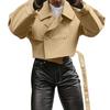 Куртка имеет длинные лацканы, длинные рукава и регулируемый пояс на подоле для индивидуальной посадки.. Изготовленный из высококачественного полиэфирного волокна, он обеспечивает превосходную насыщенность цвета и ветрозащитный эффект..