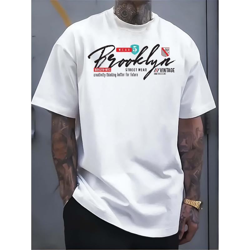 Мужская белая футболка из 100% хлопка, европейский размер: Городские вайбы: Графичная футболка Бруклин Нью-Йорк — купить товар онлайн с бесплатной доставкой по всему миру!