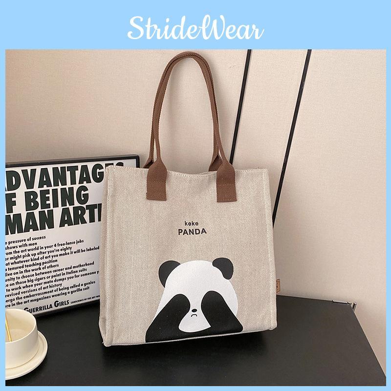 Large Capacity Panda Canvas Shoulder Bag Women Letter Cartoon Cute Tote Bag Street Fashion Shopping Bag